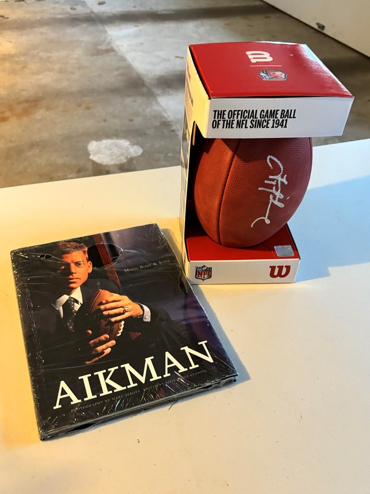 NFL Football signed by HOF QB Troy Aikman and Aikman Mind Body and Soul pictorial book
